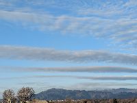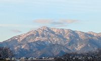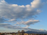 大山に雪が降りました。 2月の青空に雲、寒いです。