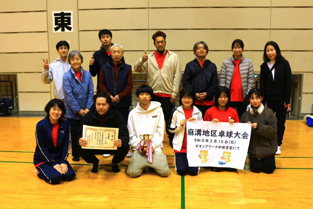 2月15日(日)、恒例の卓球大会が6チーム参加で行われました。優勝は4支部、準優勝は1支部、第3位は5支部でした。