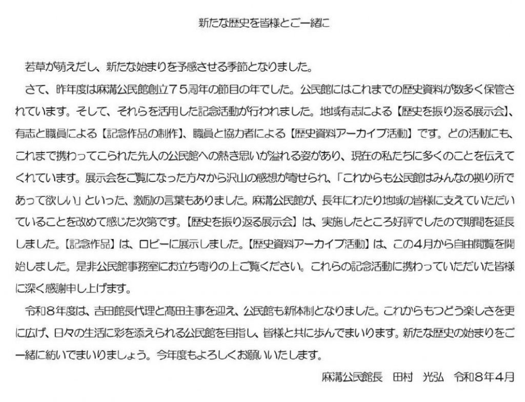 館長のあいさつ(令和8年4月)