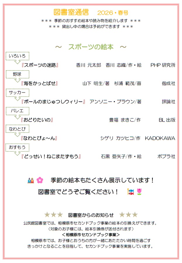 今月はありません。新年度までお待ちください