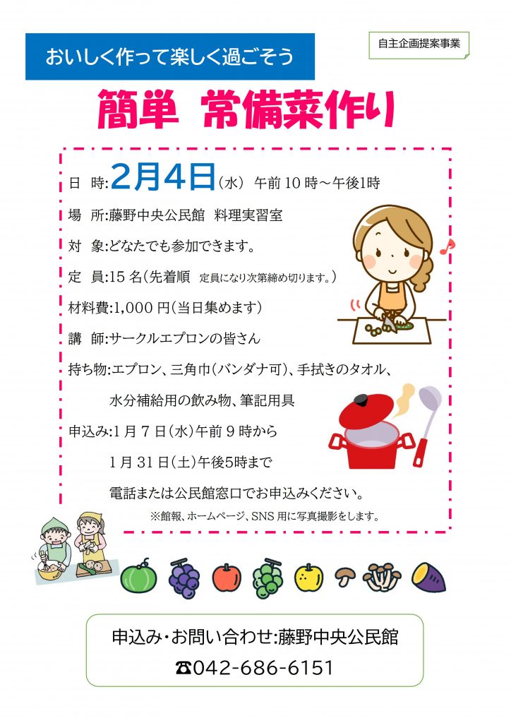 藤野中央公民館 自主企画提案事業「簡単 常備菜作り」