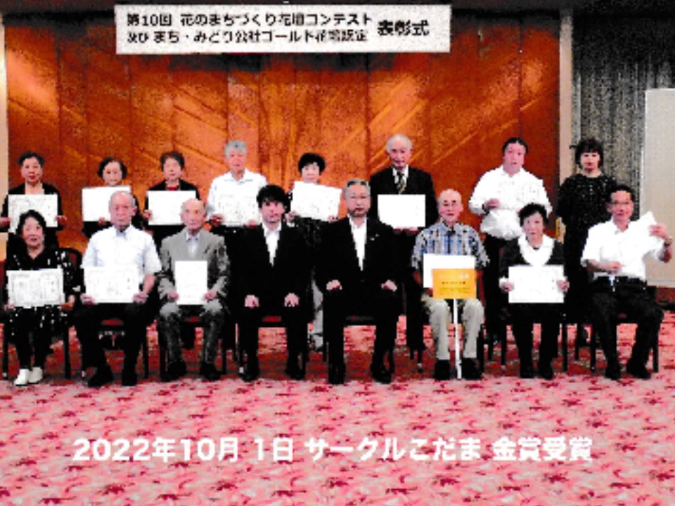 当公民館の花壇をいつも綺麗に管理して頂いている「サークルこだま」が、令和4年度第10回花のまちづくり花壇コンテストで金賞を受賞しました。