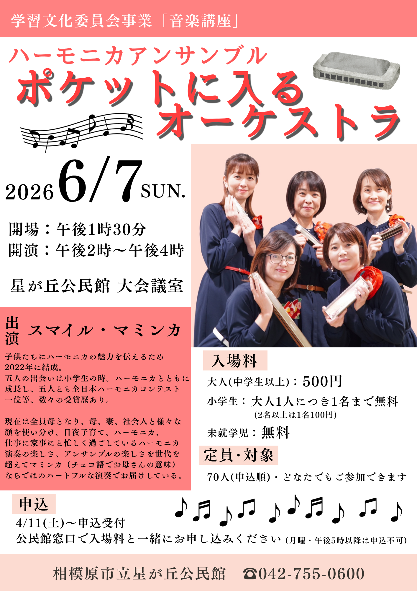 音楽講座「ハーモニカアンサンブル ポケットに入るオーケストラ」