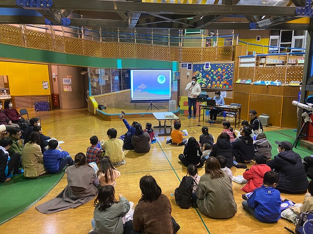 あいにくの曇り空のため室内での学習となりました。星座や木星について学び、星座早見盤を使って雲の上の星空を想像しながら観察しました。星座クイズも楽しみました。