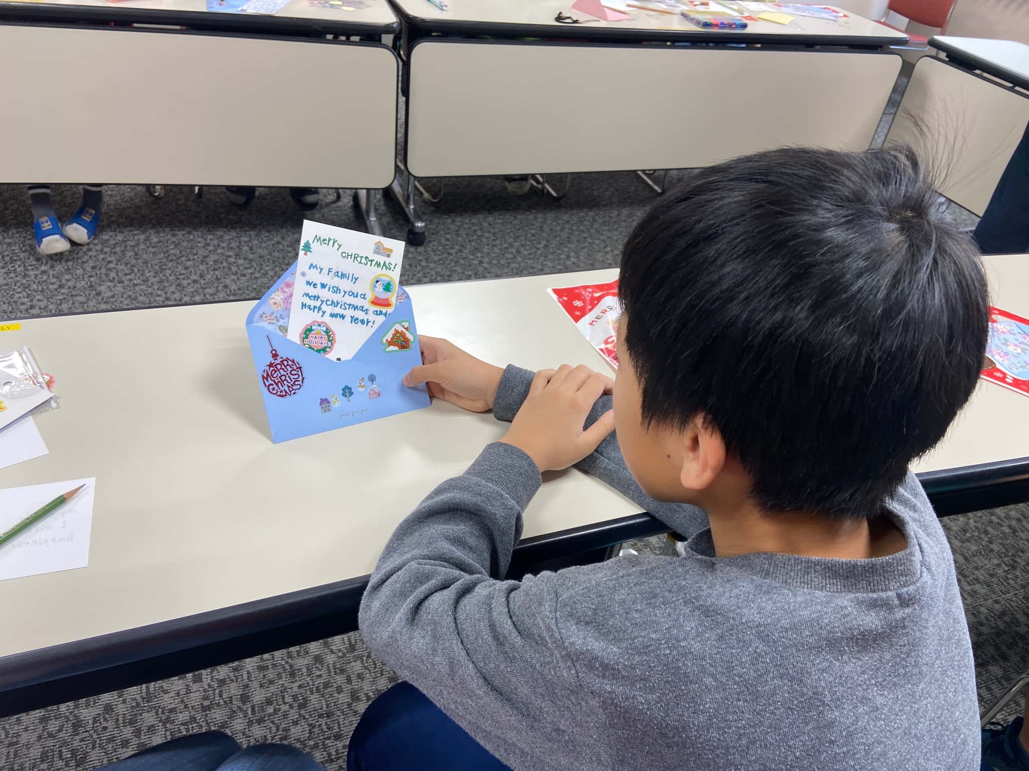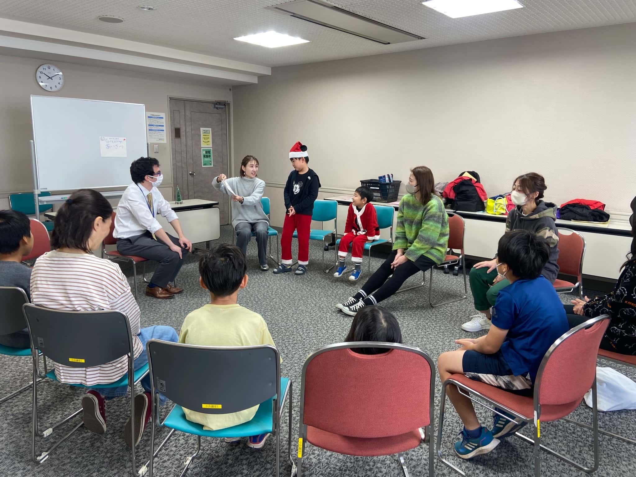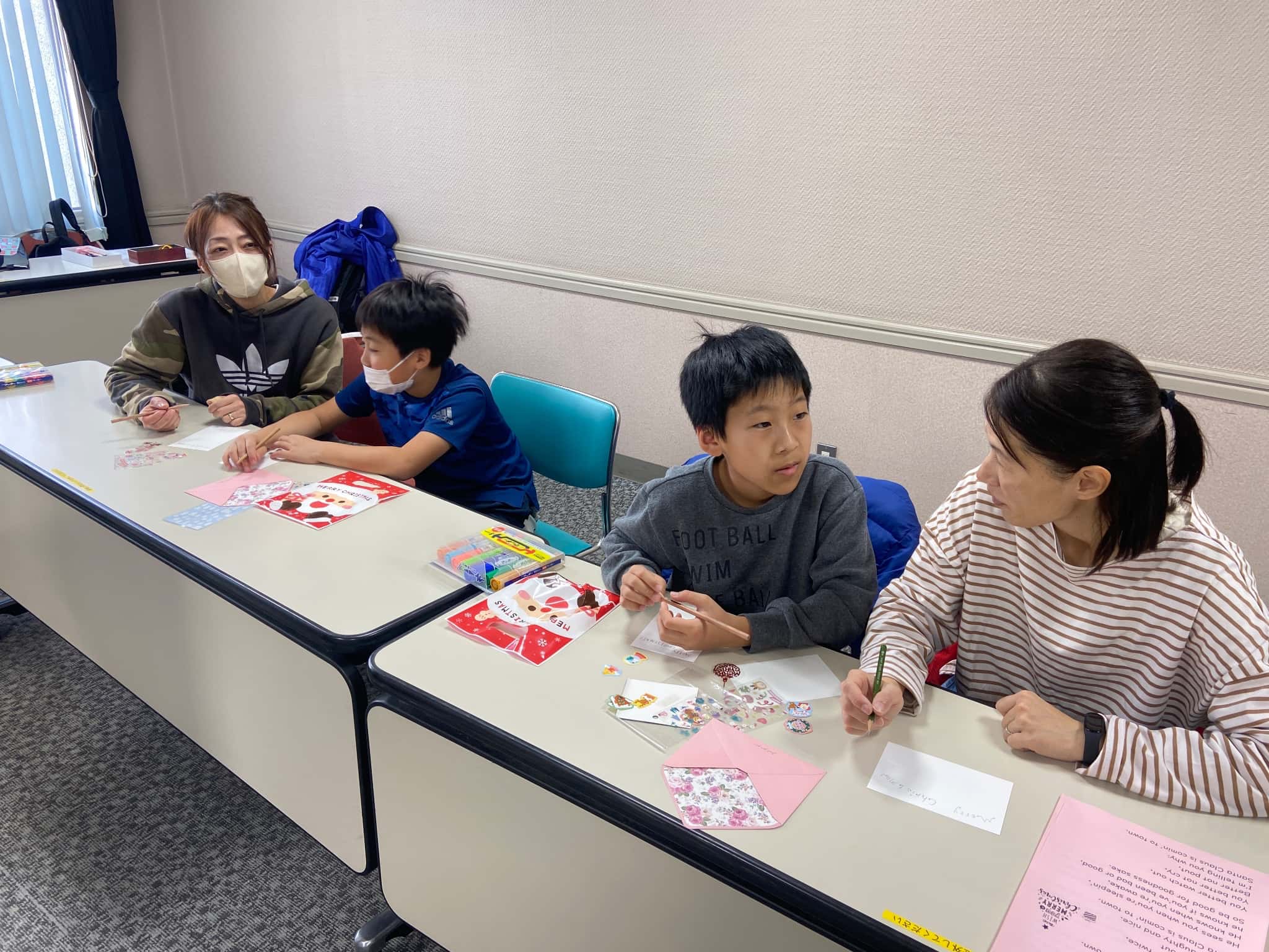 市国際交流員さんと一緒に英語で自己紹介や、カナダのクリスマスのお話を聞き、親子で楽しみました。大切な家族やお友だちに贈るクリスマスカードも英語で作成しました。