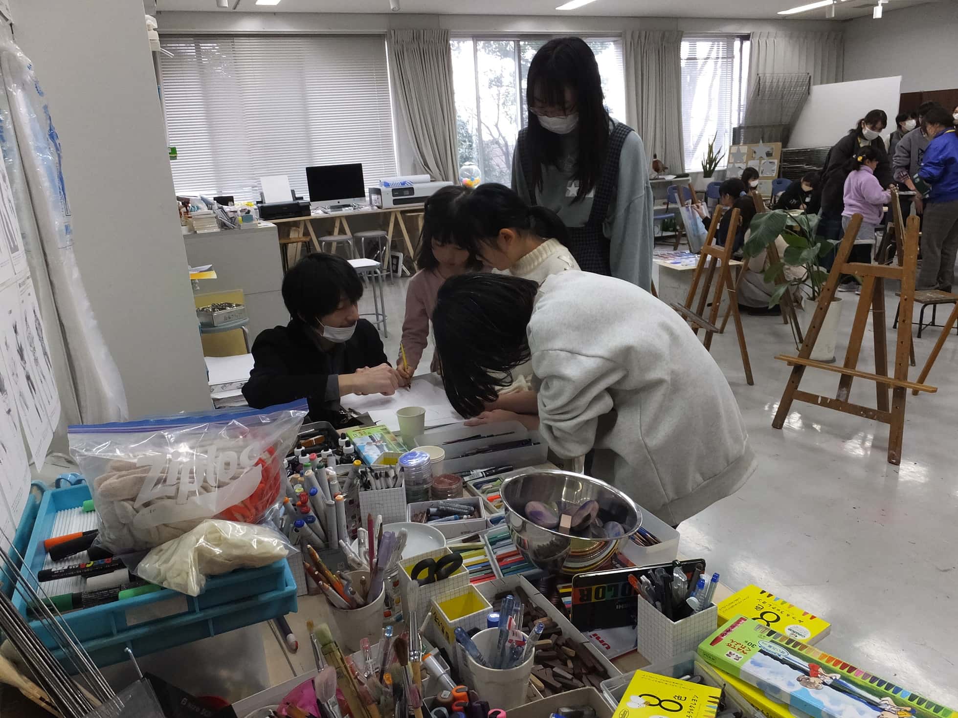市内の女子美術大学でお絵描き教室を開催しました。子どもたちは「小学校と大学は雰囲気が違う!」と始まる前から楽しそう!教員を目指している大学生が講師となり、本格的な画材を使って自由にアートを楽しみました。2時間集中して作品を完成させる姿に感動です。