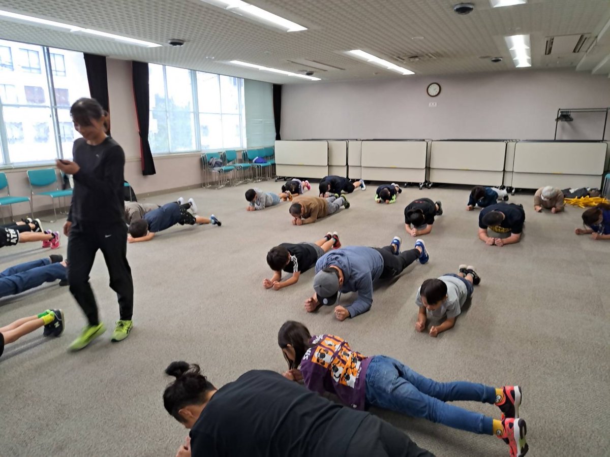 父と子のチャレンジ講座2「走り方教室」を開催しました。雨でしたが、青山学院大学陸上競技部の学生を講師に迎え、日頃行っているトレーニングを体験しました。体幹を鍛え、腕を大きく振るポイントなどを学び、運動会に向けた特別な準備ができました。