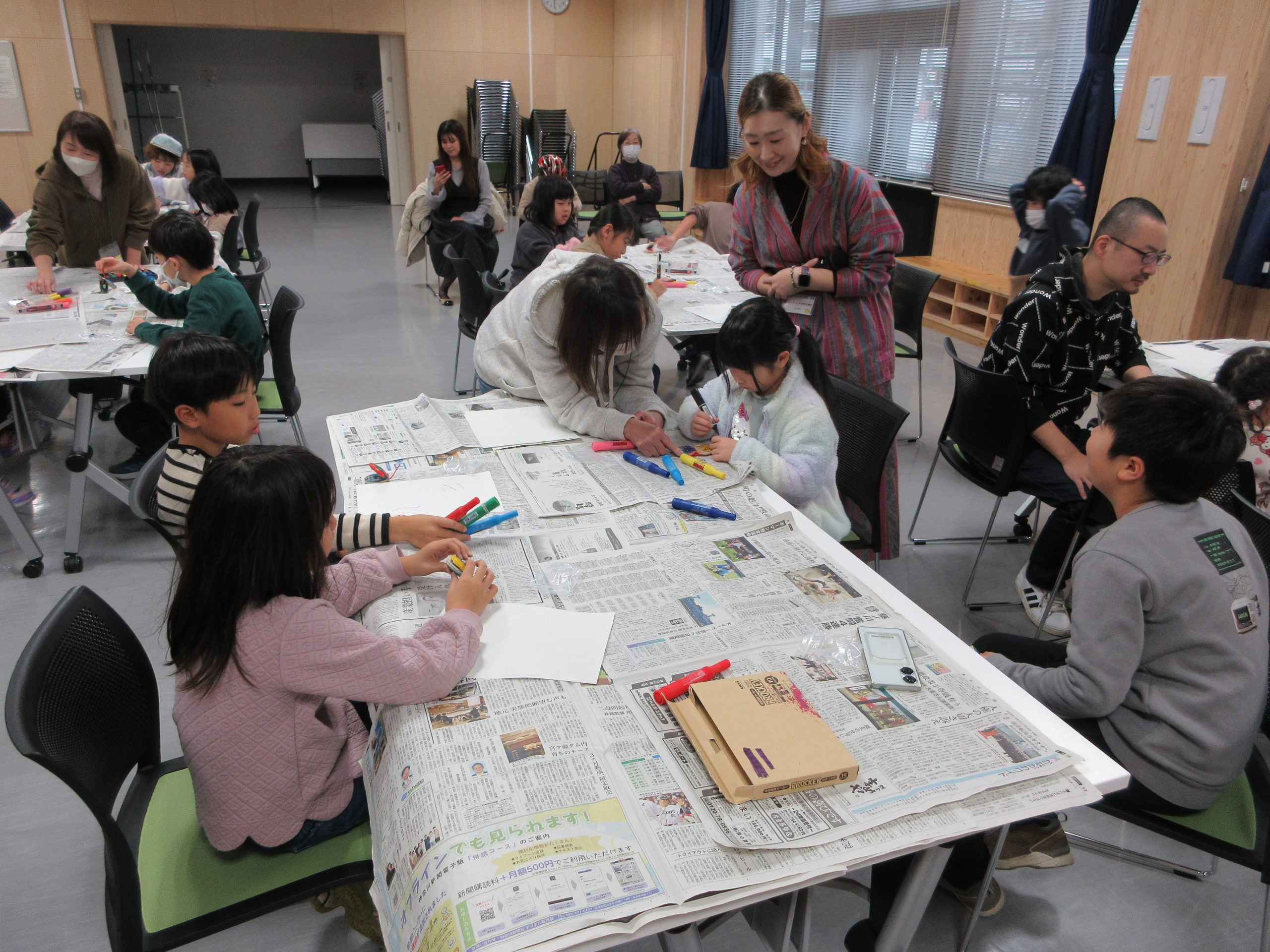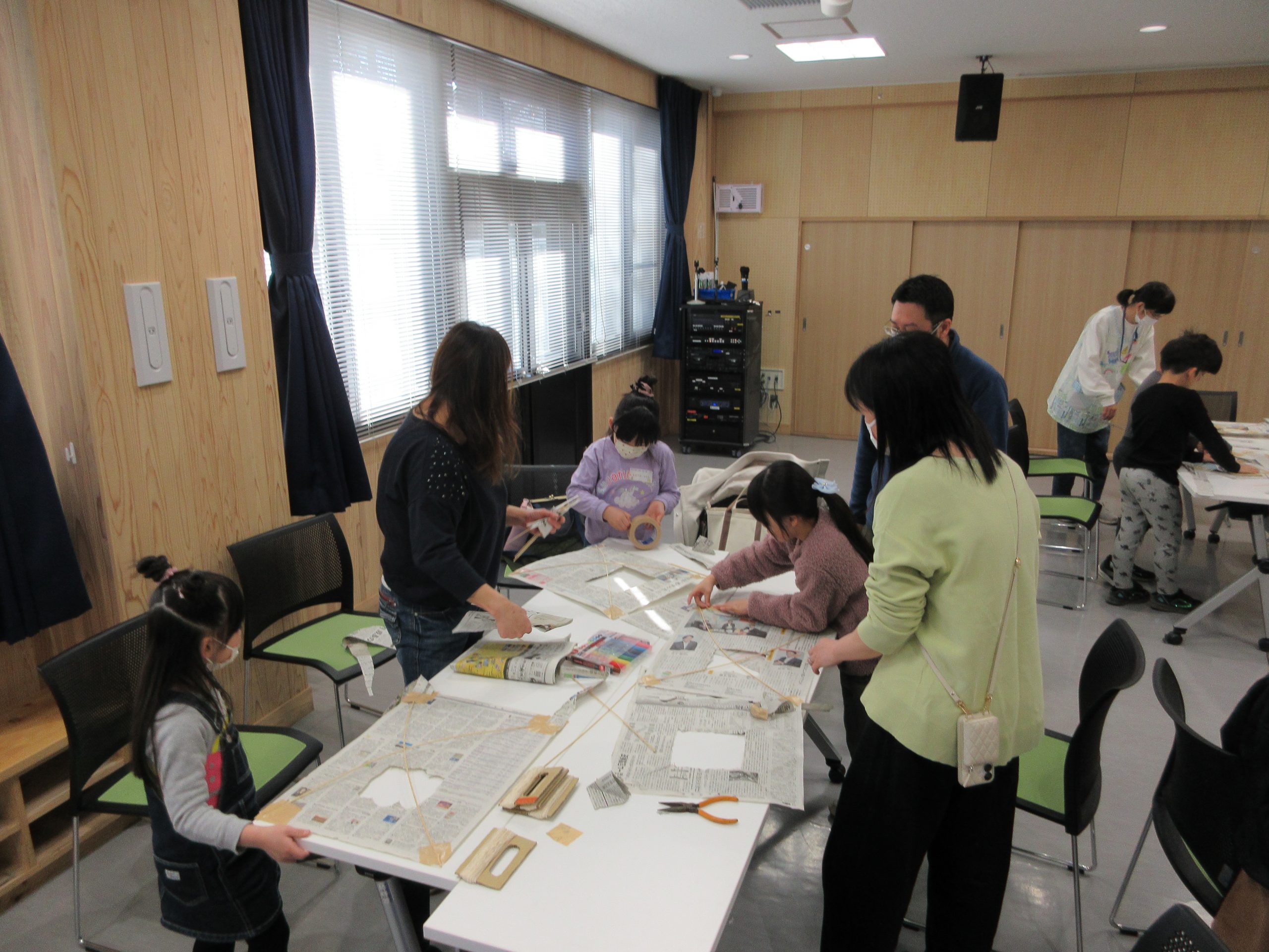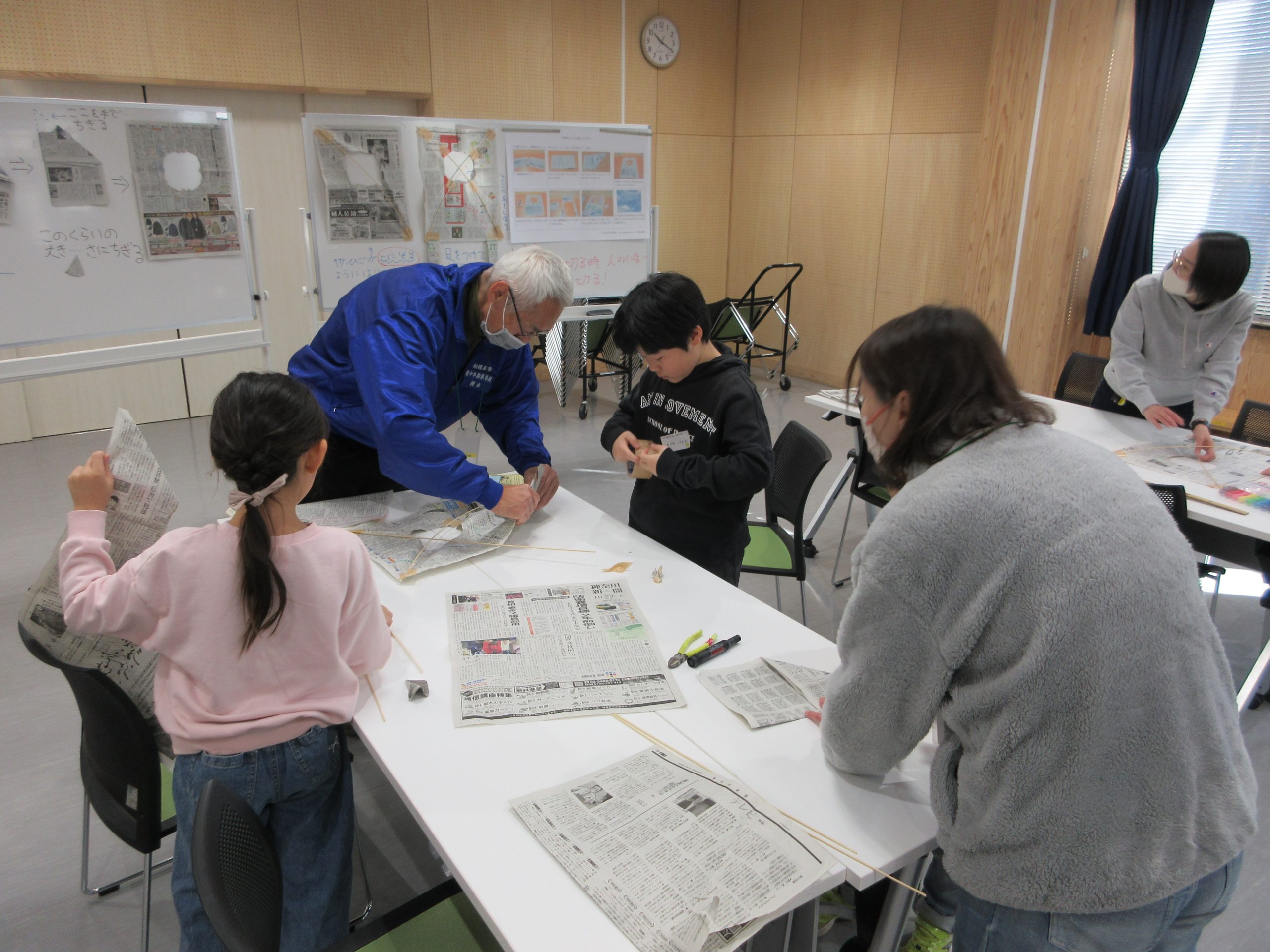 凧揚げ体験教室を開催しました。新聞紙で凧揚げを作るところから教わり、その後校庭でコツを伝えてもらいながら揚げました。参加者からは「凧を揚げられて嬉しかった」など嬉しい言葉が上がりました。