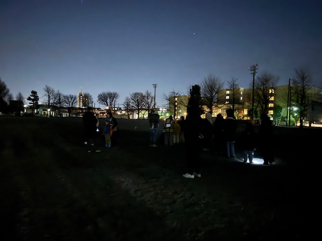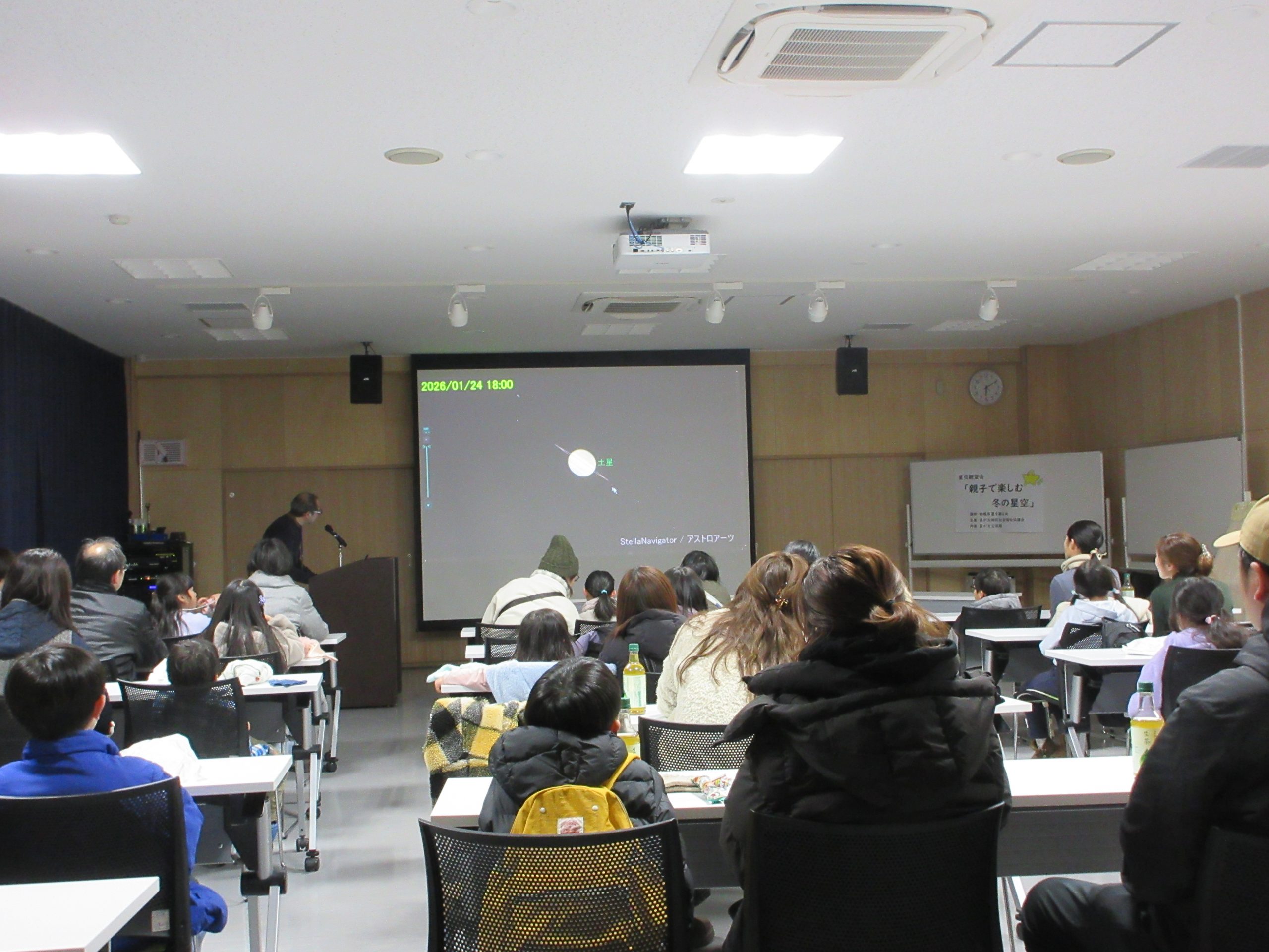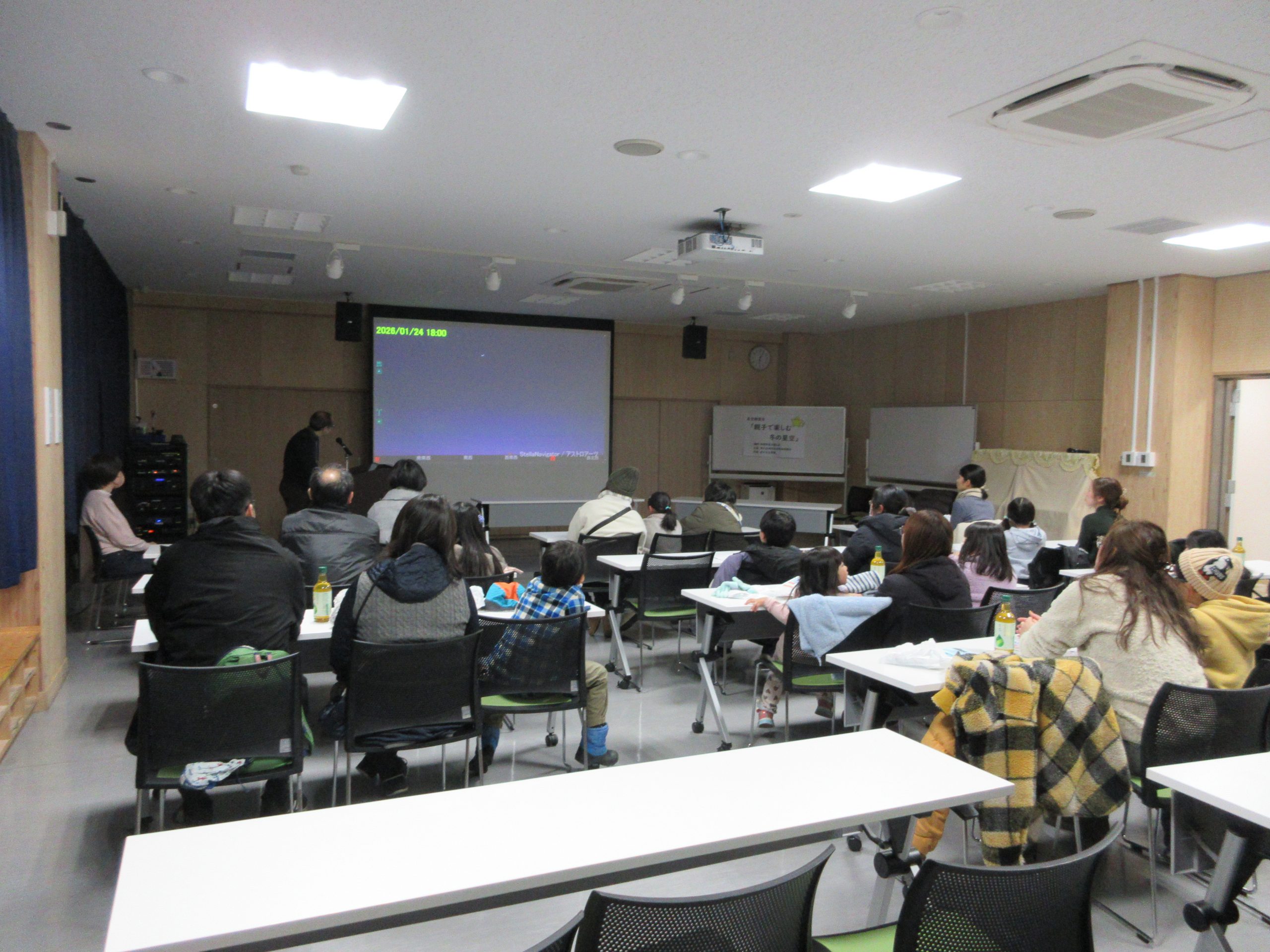 星空観望会を開催しました。相模原星を観る会有志の方を講師としてお迎えして、大会議室で星についての講義を受けました。その後、星が鮮明に見える望遠鏡をのぞき込み、目でも耳でも星について学ぶことができました。