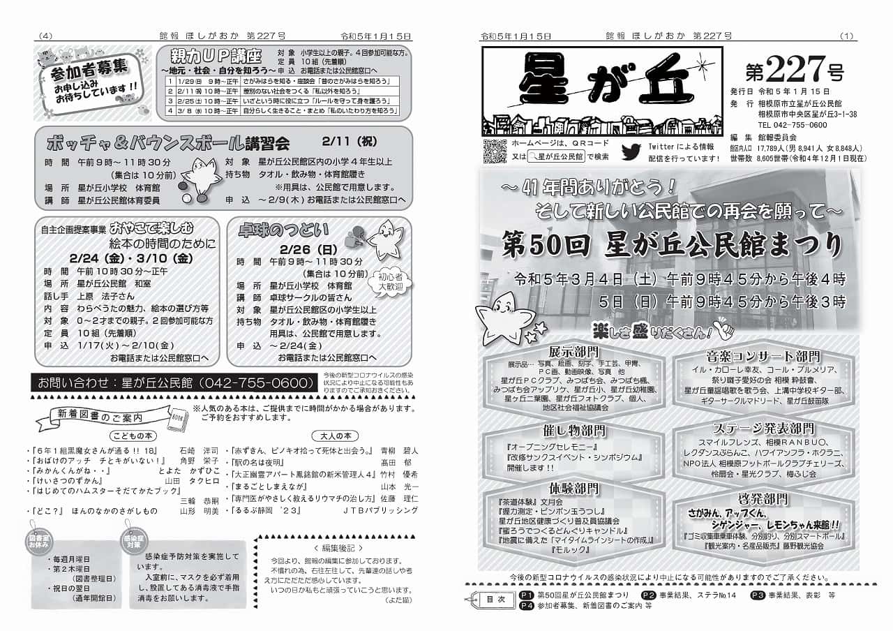 | 【館報ほしがおか第227号 2023/1/15発行】 | |||