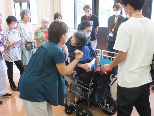 ![]() 車椅子に移乗させる方法を教えてもらいました。 |