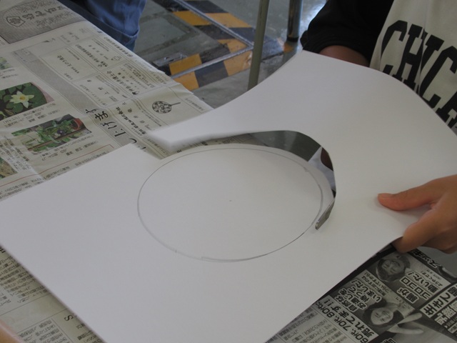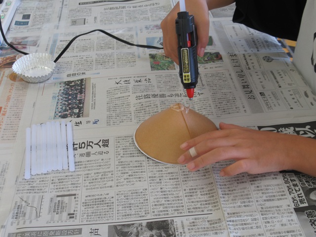 ![]() グルーガンの出番! 型にグルーを付けます。 |