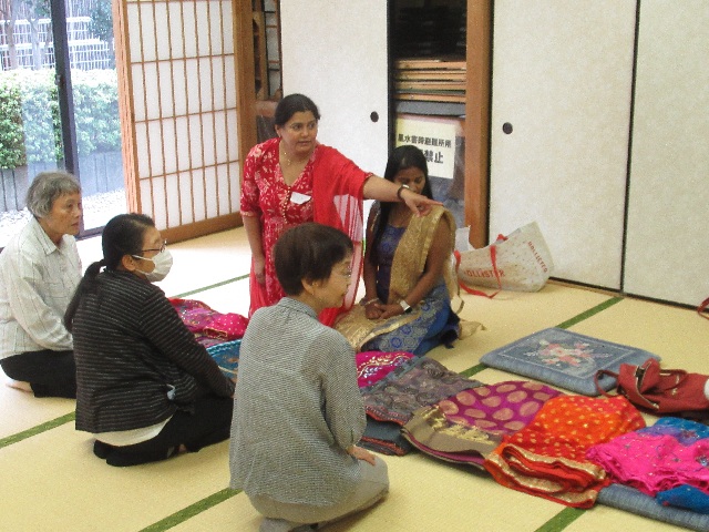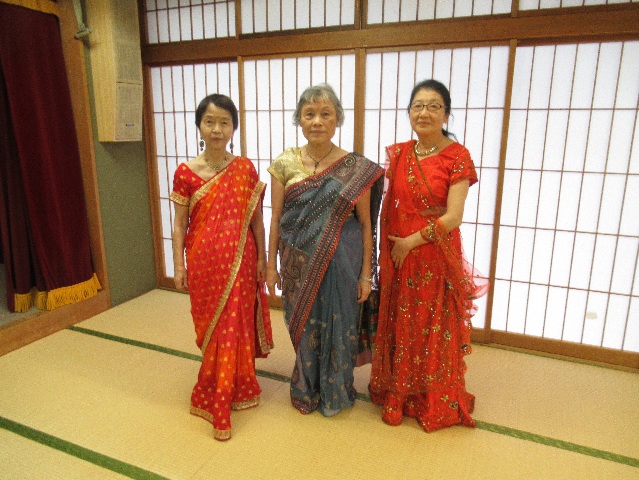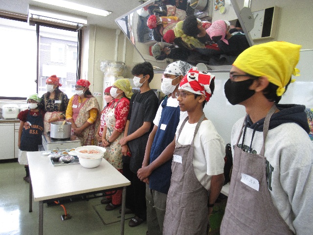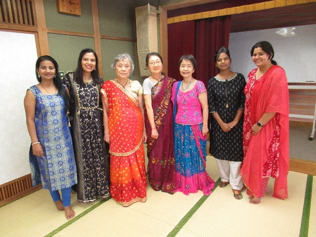 午前はインドカレー作り、午後はインド女性の衣装(サリー)の巻き方について、それぞれ体験をしました。指導されたインド人との会話も弾み、インドの歴史や文化、風習を知る良い機会となりました。