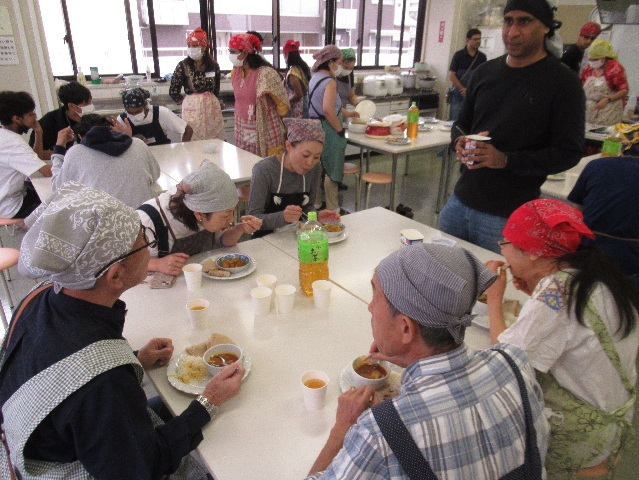 ![]() 大勢のインド人(高校生も)から本格的なインドカレー作りを教えてもらいました。 |