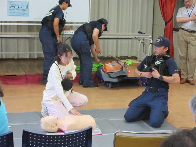 ![]() 心肺蘇生、まずは消防署の方の実演 |
