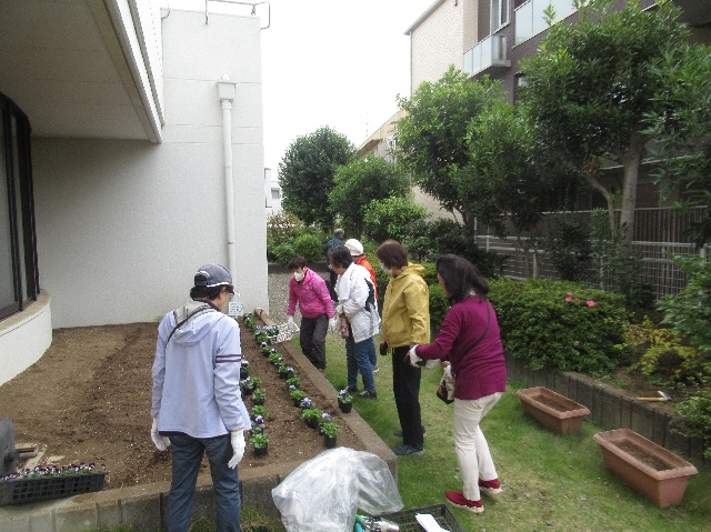 毎年恒例の春の花植え。たくさんの方が参加してくださいました。夏に向けて色とりどりの花壇になるのが楽しみですね!