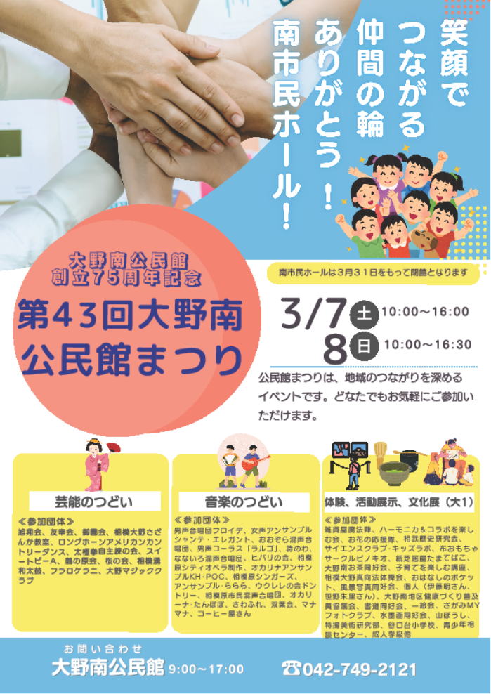 | ・第43回大野南公民館まつり(3/7、3/8) | ||||||||||||