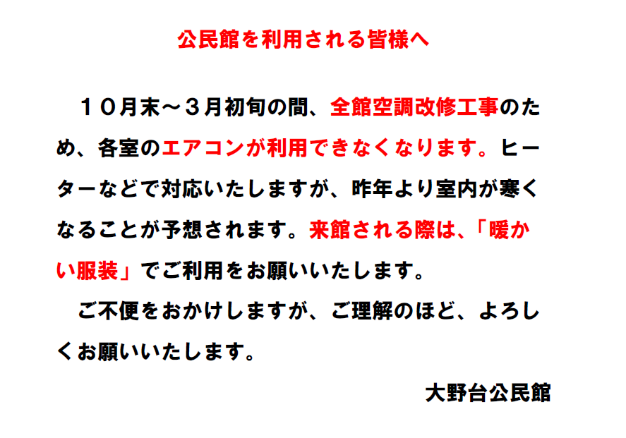 ようこそ!相模原市立大野台公民館のホームページへ。