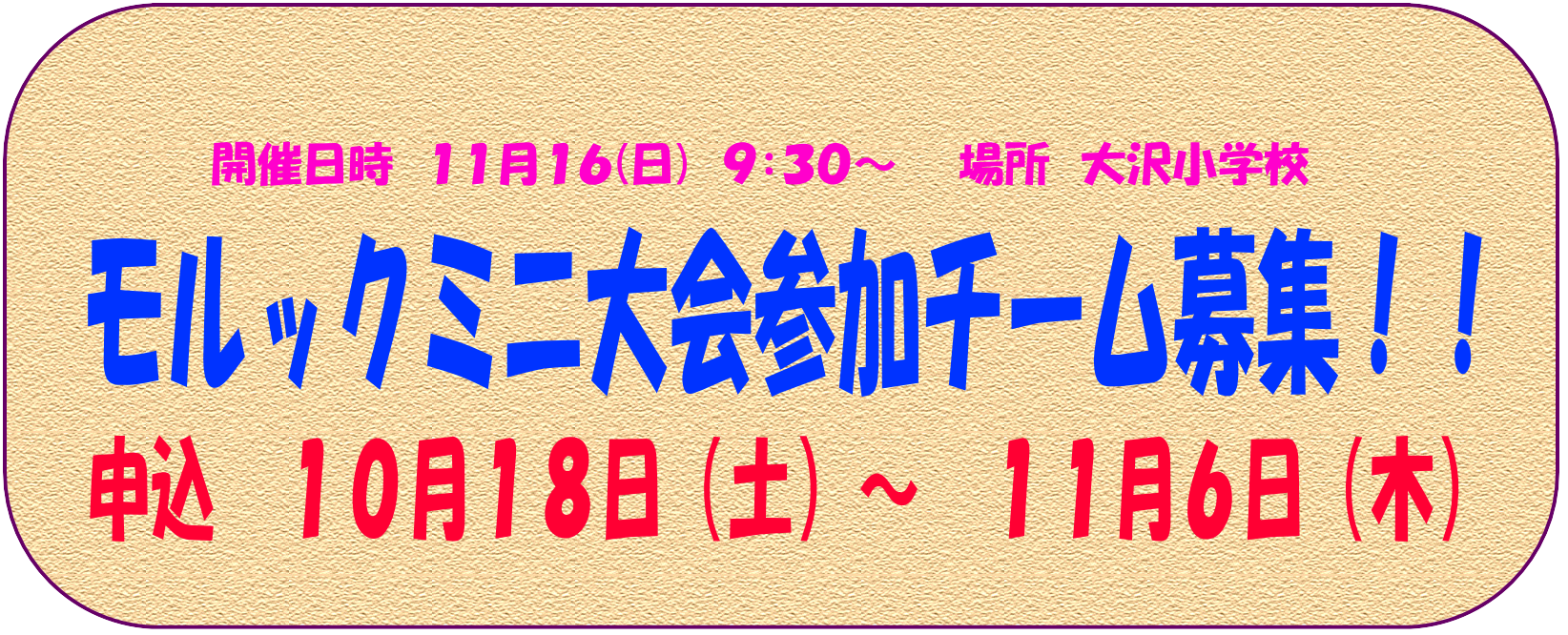 10月4日(土) 親子全力クラブ⑥5日(日) 大沢健康づくり教室(スポーツフェスティバル)共催
