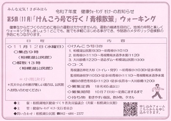 〇令和7年度 第5回健康ウォーキングセミナー