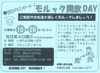 【モルック開放DAY】 10月26日(日) 午前9時~正午