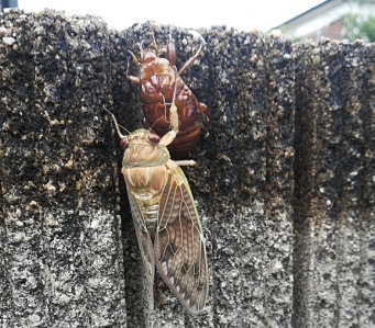 7月26日の早朝 若葉台を散歩中に、住宅の塀に羽化したてのセミを見つけました 今年の夏は 酷暑すぎてか、セミの声も少ないように感じます。 でも、雲が多くて少しでも涼しいと、周り中でセミの大合唱です
