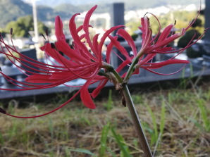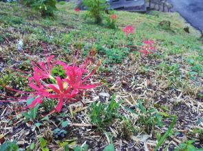 8月14日、中沢 普門寺での光景です まさか!!、ヒガンバナが咲いてます 立秋は過ぎたとはいえ 例年より1ヶ月くらい 早いと思います…