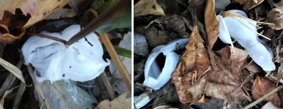 シモバシラの華 この冬はいつにもまして、寒さが応えます。 そんな冬の朝、城山湖周回のハイキング道の松見平休憩所あたりで 一瞬捨てられたテッシュのように見えますが近づいてみれば、 一つとして同じ形はなく、華ができるときの温度や風向、
