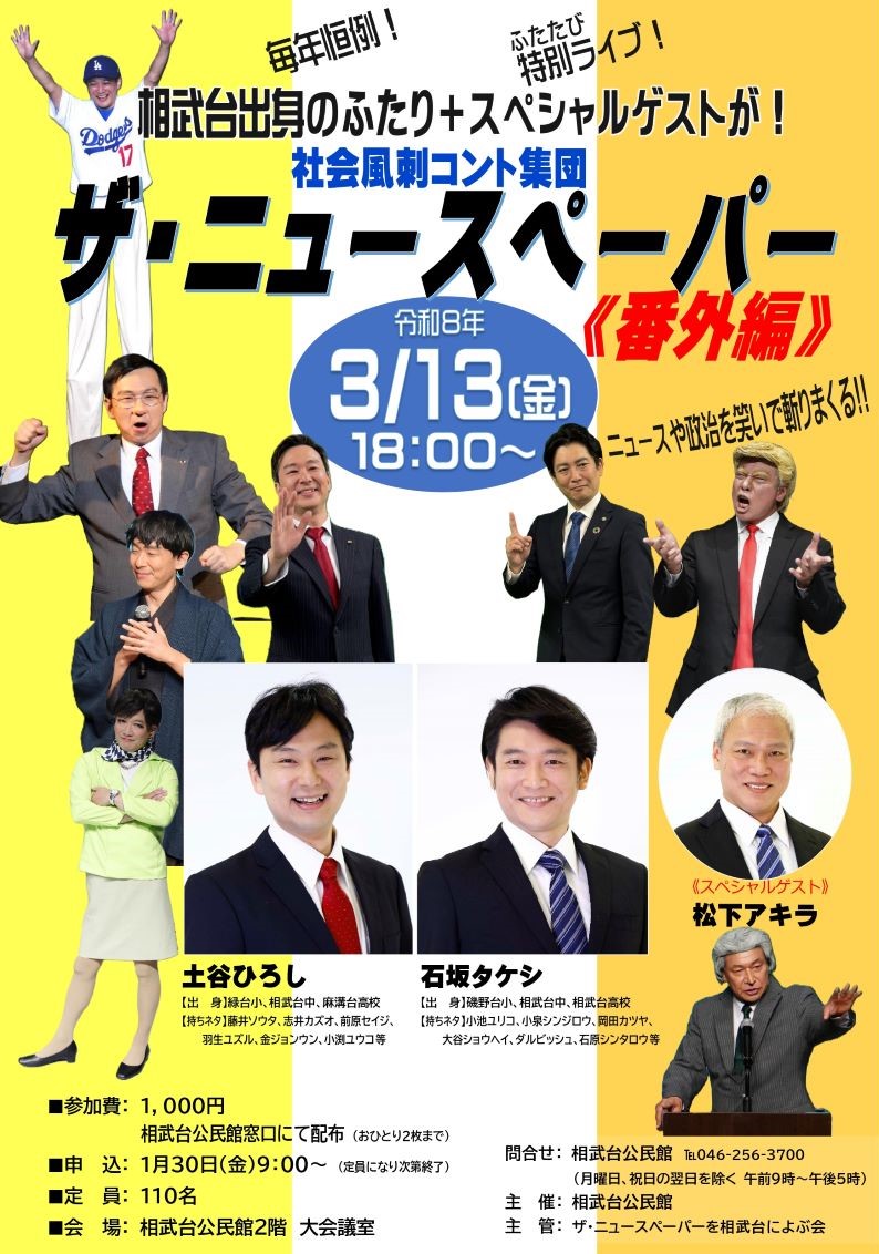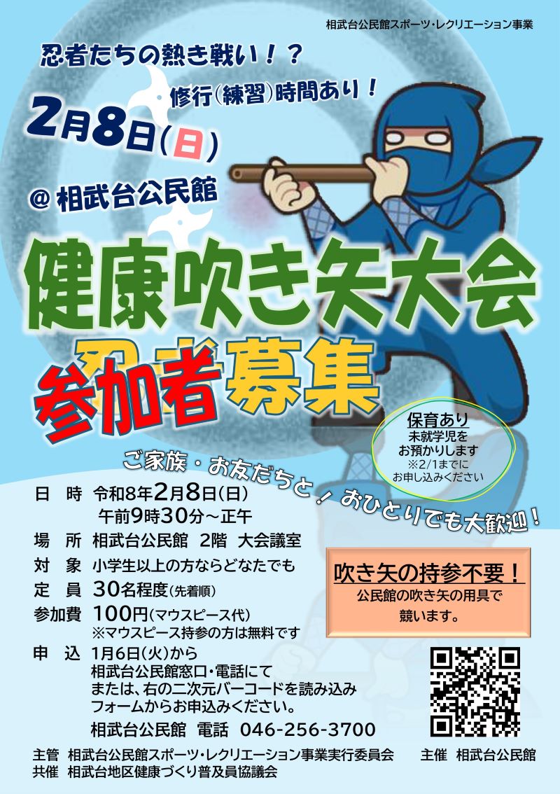 ・対 象: 相武台公民館内で活動するサークルや団体(個人での利用はできません)