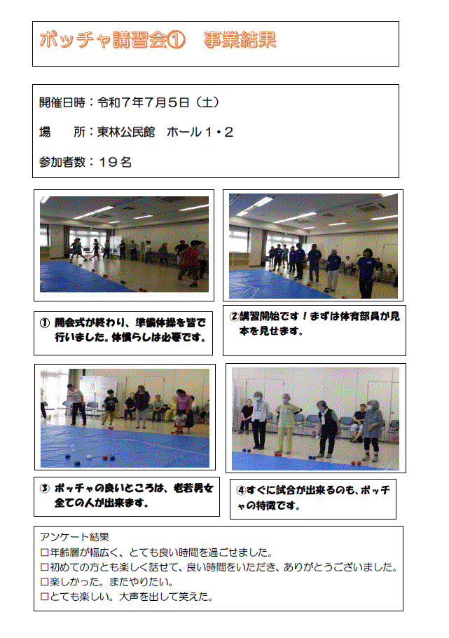 | 7 | 〇ボッチャ講習会① (5日) |