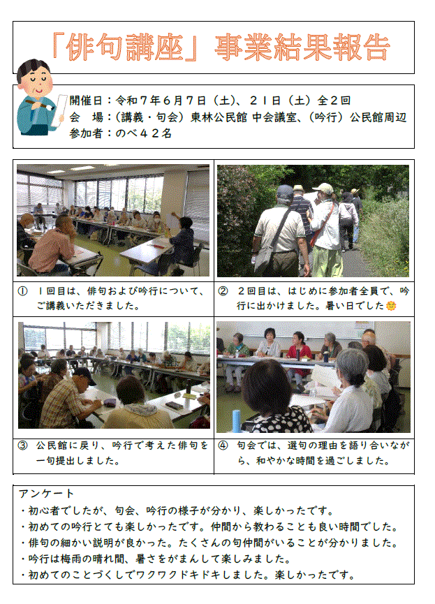 | 6 | 〇文化講座1「俳句講座」(7日、21日) |