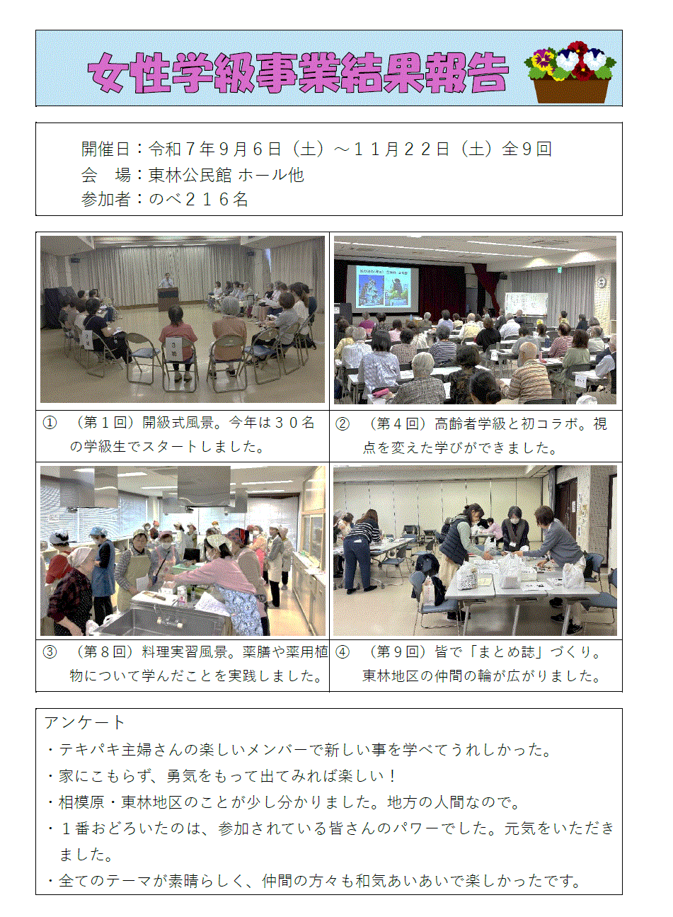 | 9 | 〇女性学級 (6日) 〇高齢者学級 (17日) |